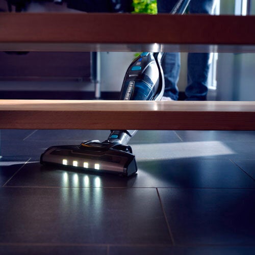 - Quatre LED sur le devant de l’aspirateur rendent la saleté visible même dans les coins sombres et sous les meubles