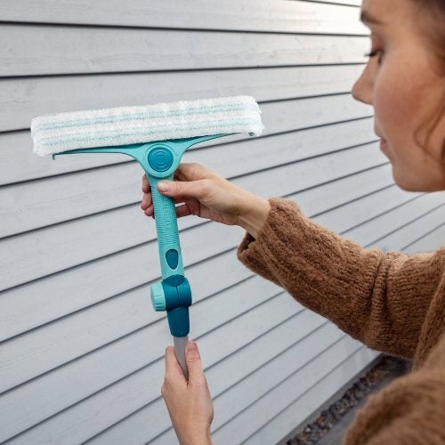 Le lave-vitres 4-en-1 de Leifheit Telescope, parfait pour nettoyer les fenêtres et les endroits difficiles d’accès, réunit 4 usages en un seul et même produit pour des vitres propres sans trace. Grâce à lui, il est facile de laver et racler les vitres et les cadres.