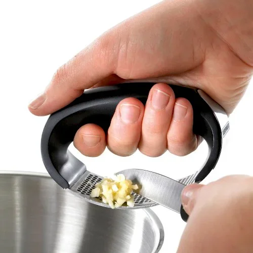 Le presse-ail de Leifheit n'écrase pas les gousses, mais les découpe en cubes vraiment petits Il tient très bien dans la main et passe au lave-vaisselle !