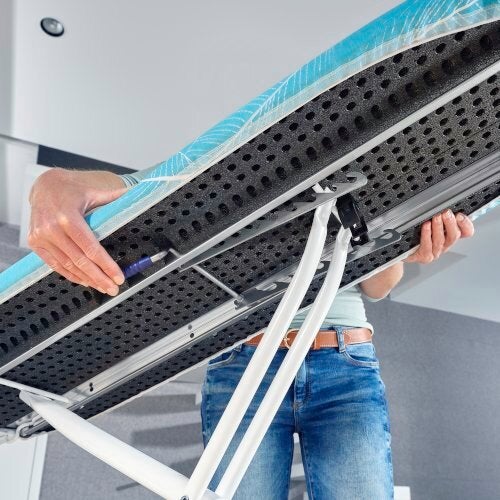 La table Air Board M Solid Plus accélère et facilite votre repassage grâce à une housse de table de repassage à réflexion de chaleur. Cette table de repassage convient parfaitement à l’utilisation de fers à repasser à vapeur.