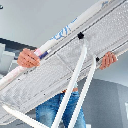 La table à repasser Classic M Basic Plus est le modèle d'entrée parmi les tables à repasser avec un repose-fer avec prise électrique qui rend le repassage sûr et facile.
